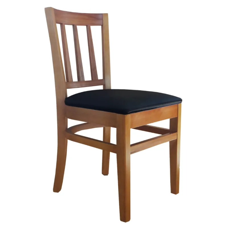 Assento anatômico em madeira ou estofado com espuma de 40mm e densidade 28.Encaixes macho e fêmea, espigas e cola PVA especial com cantoneiras internas de reforço.