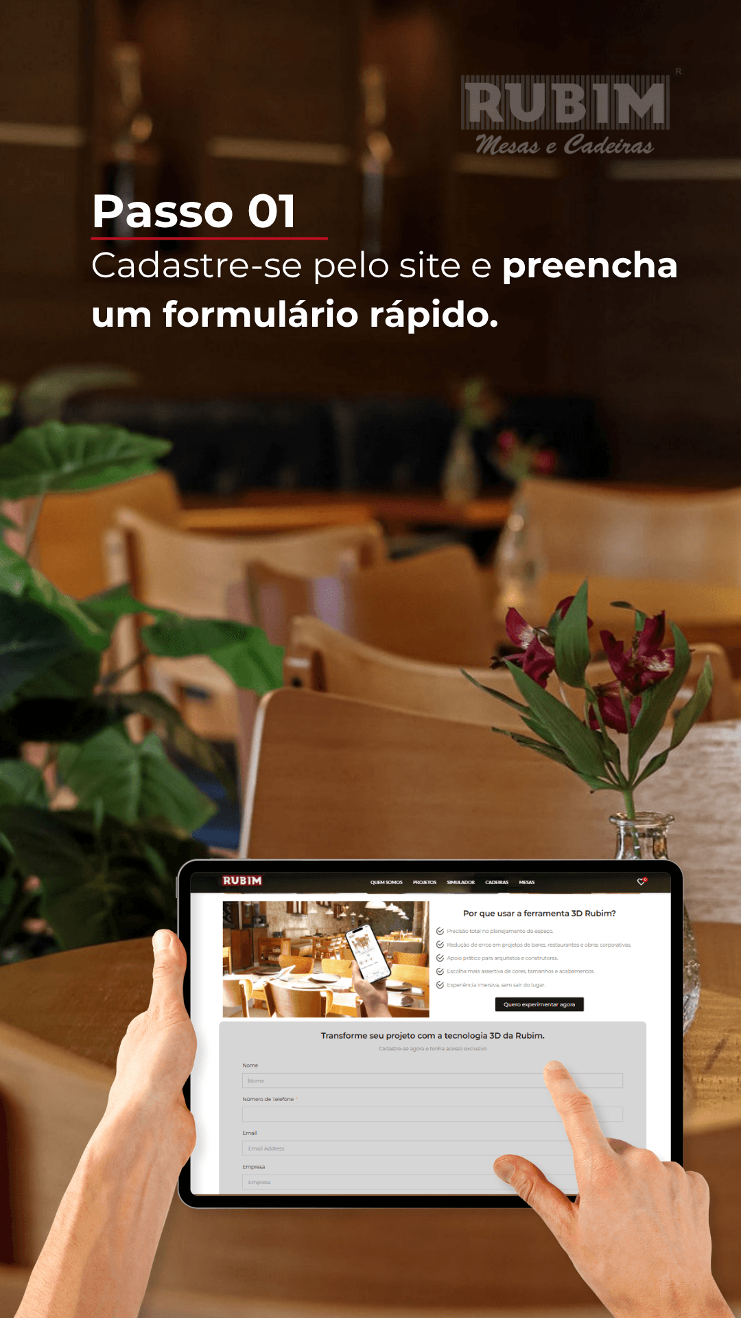 - É uma plataforma online que permite visualizar os móveis Rubim em escala real no seu ambiente, antes mesmo da compra